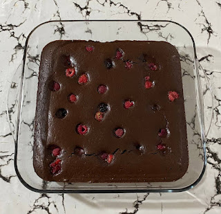 4. Hazırlanan kek harcı, yağlanmış bir borcama dökülür ve üzerine frambuaz ile böğürtlenler dizilir.
