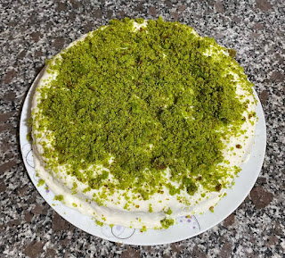 13. Kekin üzerine muhallebi dökülür ve yayılır.